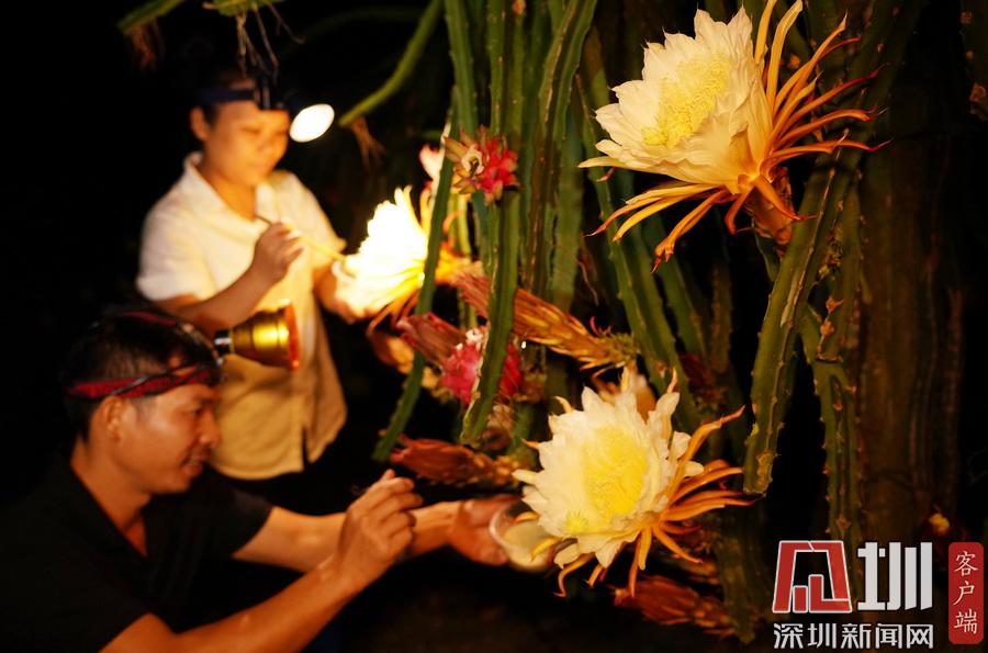 廣西融水:火龍果果農(nóng)夏夜“點(diǎn)花”忙