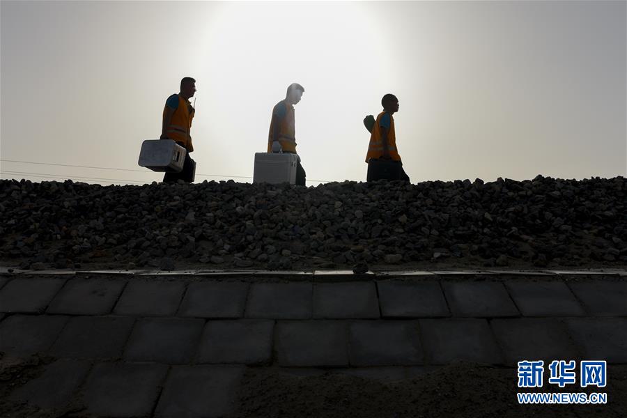 鋼軌打磨機(jī)組的技術(shù)員拿著檢測(cè)設(shè)備前往下一個(gè)檢測(cè)點(diǎn)(7月14日攝)。新華社記者 丁磊 攝