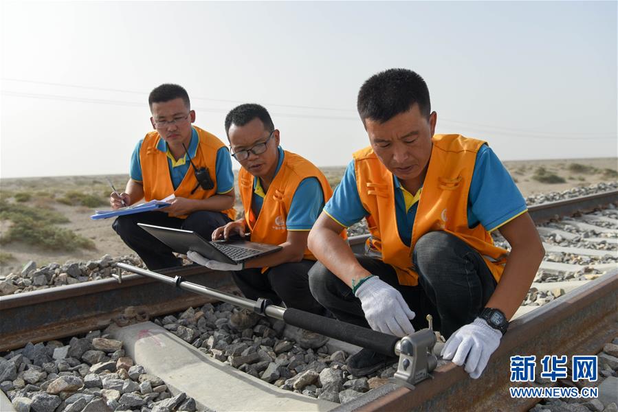 技術員進行鋼軌廓形檢測(7月14日攝)。新華社記者 丁磊 攝