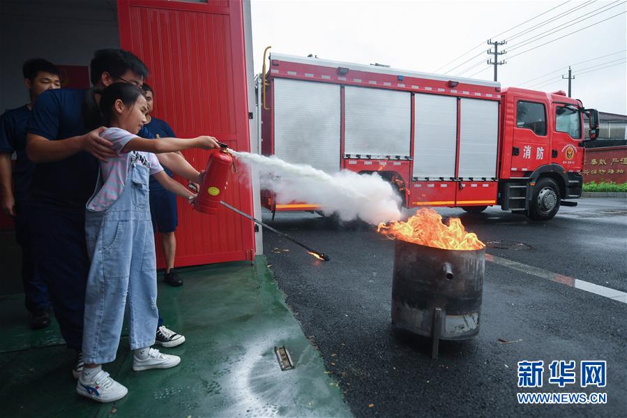 7月16日,一名小學(xué)生在東林鎮(zhèn)消防綜合應(yīng)急救援隊(duì)隊(duì)員的指導(dǎo)下學(xué)習(xí)使用滅火器。當(dāng)日,浙江省湖州市吳興區(qū)東林鎮(zhèn)舉辦暑期“安全防護(hù)小超人”主題活動(dòng)?;顒?dòng)由醫(yī)護(hù)人員、消防隊(duì)員等為學(xué)生及家長(zhǎng)講授日常安全避險(xiǎn)及溺水急救知識(shí),中小學(xué)們還在現(xiàn)場(chǎng)學(xué)習(xí)了簡(jiǎn)易包扎、心肺復(fù)蘇的正確方式,并了解滅火器、滅火毯等消防器材的使用,為學(xué)生平安過(guò)暑期打好安全防護(hù)“預(yù)防針”。新華社記者 徐昱 攝