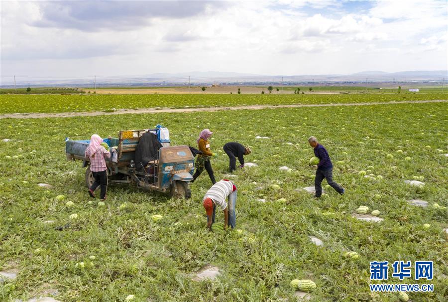 7月16日,在寧夏中衛(wèi)市香山鄉(xiāng)硒砂瓜萬畝示范基地,瓜農(nóng)在采收硒砂瓜。近日,寧夏中衛(wèi)市迎來硒砂瓜豐收季。硒砂瓜是中衛(wèi)市的特色農(nóng)產(chǎn)品,近年來,當(dāng)?shù)夭扇〖夹g(shù)創(chuàng)新、規(guī)?;N植、休耕輪作等多項(xiàng)舉措,讓硒砂瓜種植成為當(dāng)?shù)剞r(nóng)民增收致富的重要產(chǎn)業(yè)。據(jù)了解,今年中衛(wèi)市硒砂瓜種植面積為69.7萬畝。新華社記者楊植森攝