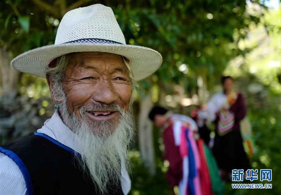 國(guó)家級(jí)非物質(zhì)文化遺產(chǎn)項(xiàng)目“久河卓舞”傳承人尼瑪(7月1日攝)。