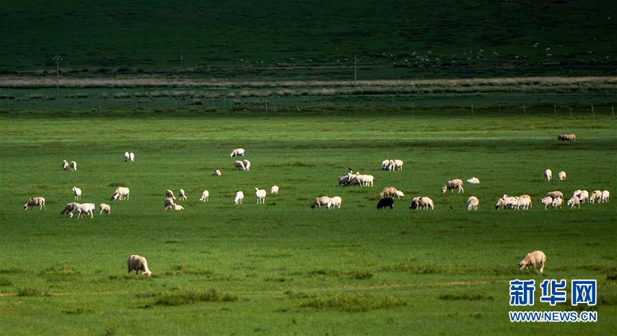 7月18日,羊群在內(nèi)蒙古錫林郭勒盟正鑲白旗境內(nèi)的草原上覓食。連日來,內(nèi)蒙古錫林郭勒盟迎來多次降雨,境內(nèi)廣袤的草原經(jīng)過雨水的滋潤(rùn),煥發(fā)出勃勃生機(jī)。新華社記者連振攝