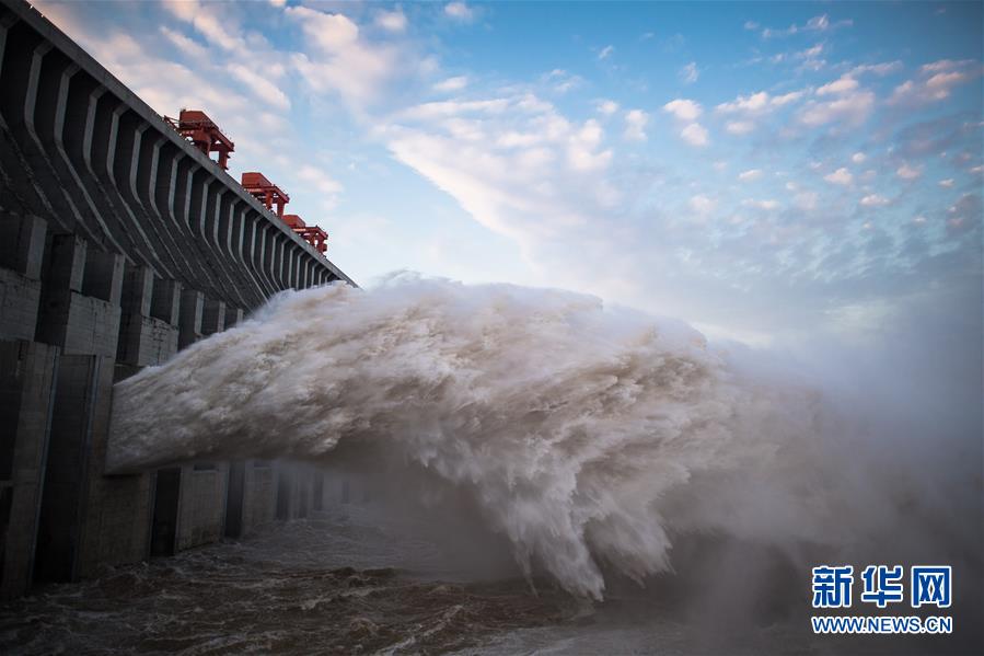 7月19日,三峽樞紐開啟泄洪深孔泄洪。19日20時,三峽水庫入庫流量4.6萬立方米/秒,較本輪洪水的峰值6.1萬立方米/秒下降了1.5萬立方米/秒?!伴L江2020年第2號洪水”平穩(wěn)通過三峽大壩。新華社記者肖藝九攝