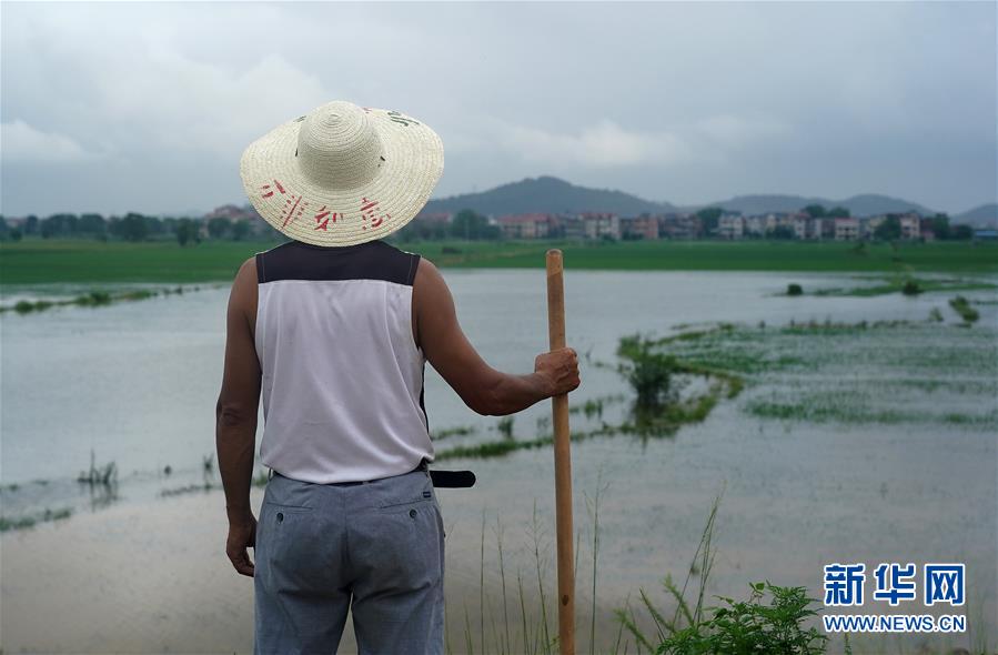 7月9日,邵忠如在圩堤上觀察水情,不遠(yuǎn)處就是他的村子。邵忠如是江西省樂平市樂港鎮(zhèn)邵灣村黨支部書記,今年56歲,負(fù)責(zé)中洲圩中一段700多米長的圩堤的巡堤守堤工作。身前是洪水,身后是村子和稻田,老邵不敢有半點(diǎn)疏忽。6天6夜,老邵和村民們不間斷地值守在圩堤上,一天4個(gè)班,一班6人,每半小時(shí)巡堤一次,發(fā)現(xiàn)險(xiǎn)情立即處置。作為村支書,老邵更是幾乎全天都在圩堤上,實(shí)在困了才會睡一會兒。新華社記者萬象攝