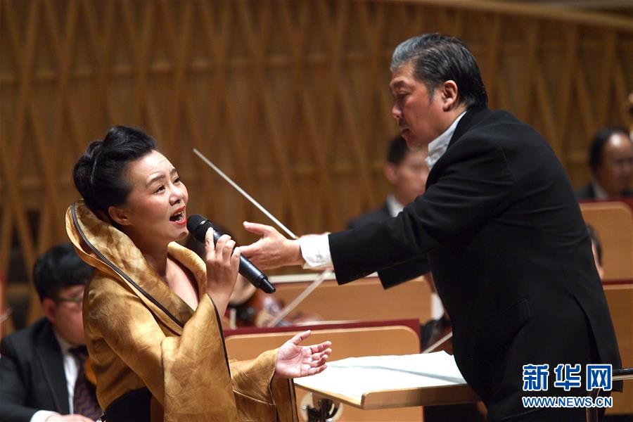 7月20日,歌唱家龔琳娜在上海夏季音樂節(jié)開幕音樂會上演唱。當(dāng)晚,為期10天的2020上海夏季音樂節(jié)開幕。開幕音樂會上,余隆執(zhí)棒上海交響樂團演繹西貝柳斯的《圖翁內(nèi)拉的天鵝》《憂郁圓舞曲》和斯特拉文斯基《火鳥》組曲,并攜手龔琳娜帶來老鑼的歌曲《靜夜思》《山鬼》。新華社記者任瓏攝