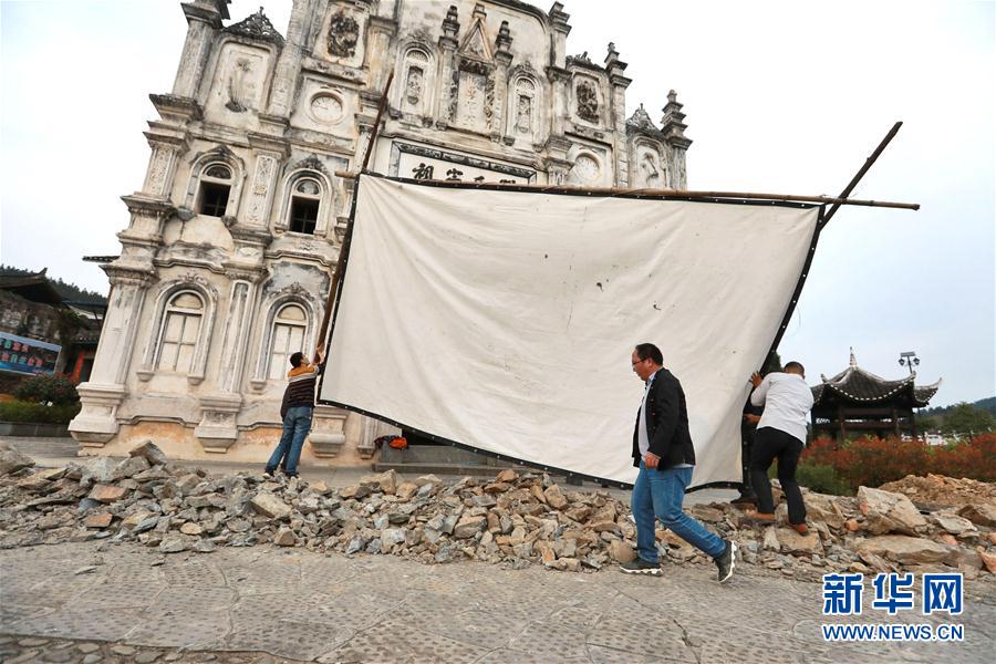 2019年3月19日,在天柱縣坌處鎮(zhèn)三門塘村,黃宜?。ㄖ校┰诖罱娪安シ拍徊?。侗族青年黃宜印是貴州省黔東南苗族侗族自治州天柱縣的一名公益電影放映員。從2014年起,他常年行走在大山里,為山區(qū)群眾播放電影。僅2018年,黃宜印就在天柱縣的37個村寨播放電影444場。新華社記者歐東衢攝