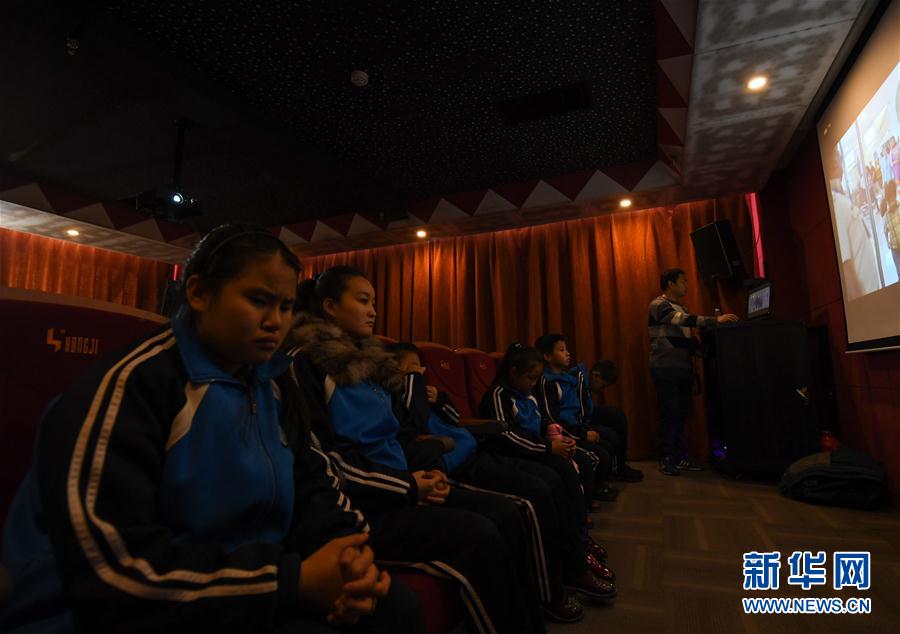2019年12月3日,視障孩子在聽蘇日娜解說電影。當(dāng)日,家住內(nèi)蒙古呼和浩特市的蘇日娜來到內(nèi)蒙古圖書館內(nèi)的殘障人圖書館,為視障人士舉辦詩歌朗誦會(huì)并解說電影。新華社記者彭源攝