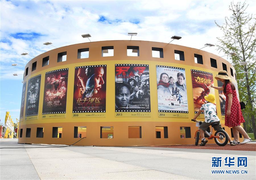 2019年8月25日,一對母子在電影海報(bào)展區(qū)參觀。8月24日,“我和我的祖國”慶祝新中國成立70周年國產(chǎn)優(yōu)秀電影海報(bào)展在青島西海岸新區(qū)啟動,百余幅電影海報(bào)與公眾見面。新華社記者李紫恒攝