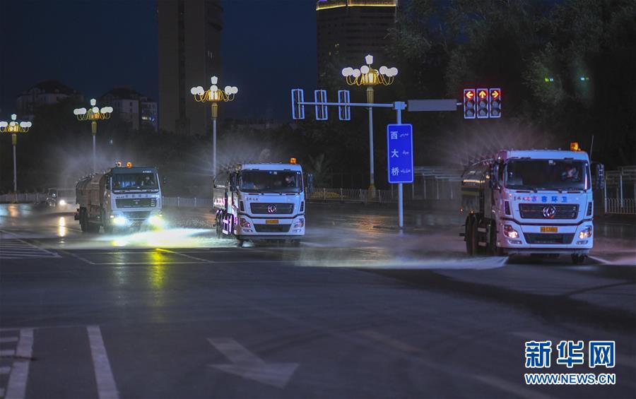 7月20日,烏魯木齊市天山區(qū)城管局清運隊的三臺工作車輛在市區(qū)光明路進(jìn)行消殺作業(yè)。烏魯木齊市天山區(qū)城管局自7月17日起,對天山區(qū)的主次干道76條及235條巷道進(jìn)行集中消殺。目前,烏魯木齊市對重點區(qū)域進(jìn)行全面消毒消殺。新華社記者趙戈攝