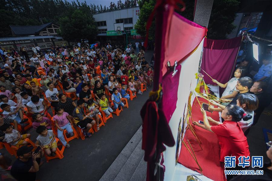 當(dāng)日,浙江省杭州市余杭區(qū)塘棲鎮(zhèn)河西埭村“衛(wèi)家班皮影戲”劇團(tuán)的藝人們來(lái)到余杭區(qū)喬司街道和睦橋村進(jìn)行演出,這是近期杭州市余杭區(qū)夏季鄉(xiāng)村“文化走親”的重要活動(dòng)之一。今年6月開(kāi)始,杭州市余杭區(qū)塘棲鎮(zhèn)組織多支文化表演團(tuán)體以“文化走親”的形式,先后送戲到余杭區(qū)近20個(gè)鄉(xiāng)村文化禮堂,豐富夏日鄉(xiāng)村百姓文化生活。在余杭塘棲一帶,歷史上曾活躍著一支以演出皮影戲出名的民間戲班子,號(hào)稱(chēng)“衛(wèi)家班”。2016年,塘棲鎮(zhèn)河西埭村在文化禮堂的建設(shè)過(guò)程中,將當(dāng)?shù)貍鹘y(tǒng)的“衛(wèi)家班皮影戲”作為“一村一品”特色項(xiàng)目進(jìn)行了搶救性保護(hù)。2018年12月,“衛(wèi)家班皮影戲”被列入杭州市非物質(zhì)文化遺產(chǎn)代表性項(xiàng)目名錄。新華社記者徐昱攝