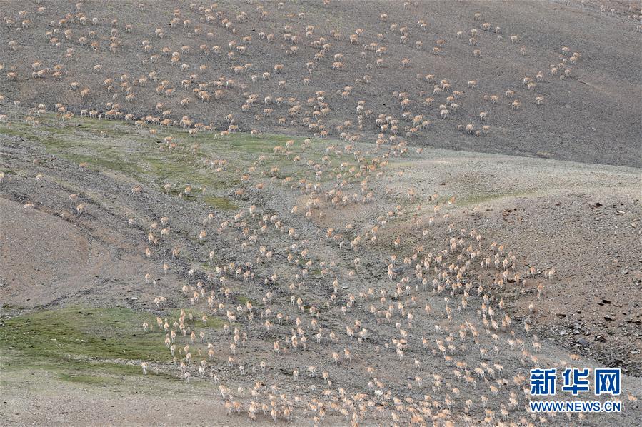 7月17日在西藏尼瑪縣榮瑪鄉(xiāng)附近拍攝的藏羚羊群。2000年,西藏羌塘自然保護(hù)區(qū)晉升為國家級(jí)自然保護(hù)區(qū)。20年來,經(jīng)過西藏各級(jí)各部門的不懈努力,羌塘國家級(jí)自然保護(hù)區(qū)內(nèi)的重點(diǎn)保護(hù)野生動(dòng)物種群數(shù)量明顯增加,其中,藏羚羊種群數(shù)量由原來的5至7萬只,恢復(fù)到目前的15萬只以上。羌塘國家級(jí)自然保護(hù)區(qū)核心地帶的西藏尼瑪縣榮瑪鄉(xiāng)附近,目前就有近6萬只藏羚羊。新華社記者覺果攝