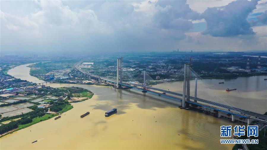 當日,中鐵十一局承建的粵港澳大灣區(qū)基礎(chǔ)設(shè)施“硬聯(lián)通”重點工程——廣州南沙港鐵路跨西江特大斜拉橋完成最后一組斜拉索吊裝,大橋預計在7月底合龍。該橋位于廣東佛山市和江門市交界處,全長1117.5米。