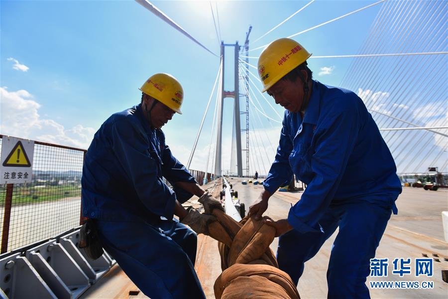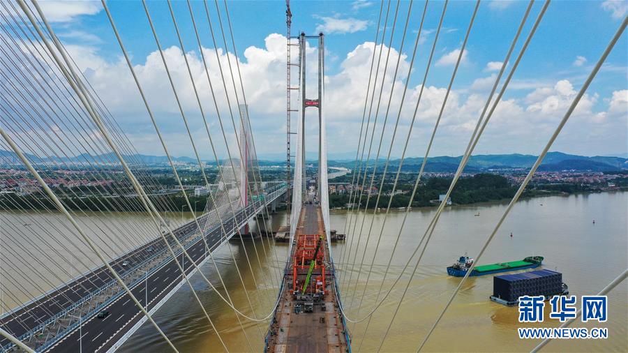 當(dāng)日,中鐵十一局承建的粵港澳大灣區(qū)基礎(chǔ)設(shè)施“硬聯(lián)通”重點(diǎn)工程——廣州南沙港鐵路跨西江特大斜拉橋完成最后一組斜拉索吊裝,大橋預(yù)計(jì)在7月底合龍。該橋位于廣東佛山市和江門市交界處,全長1117.5米。