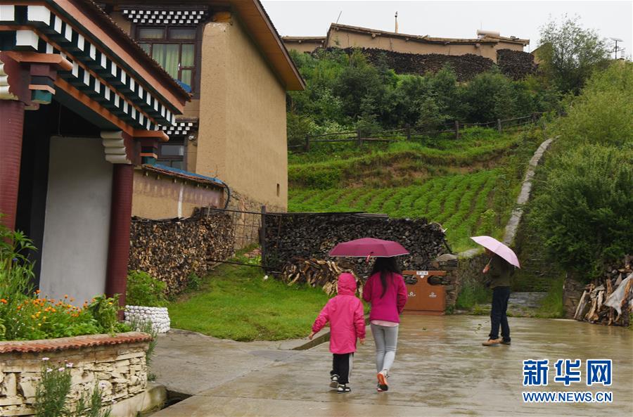 雨中踏訪,靜謐、安詳、干凈是神座村帶給記者的第一印象??諝庖卜路鹗莿倓偳逑催^(guò),沁人心脾。一幢幢藏家土黃色泥墻民居,面朝茂密的森林,坐落在鮮花盛開(kāi)的草場(chǎng)上。輕輕敲開(kāi)藏族群眾拉青家的門,48歲的拉青便領(lǐng)著記者參觀他家的民宿。他告訴記者,2017年,他賣掉家里的367頭牦牛,收入200多萬(wàn)元,用其中一半的錢建起氣派的民居,開(kāi)起客棧。第二年,客棧收入就超過(guò)15萬(wàn)元,加上售賣土特產(chǎn)收入7萬(wàn)多元,他家四口人當(dāng)年收入超過(guò)22萬(wàn)元。在他帶領(lǐng)下,先后有10多戶牧民賣牛下山辦民宿,破解了神座村過(guò)度放牧給生態(tài)環(huán)境造成壓力的難題。