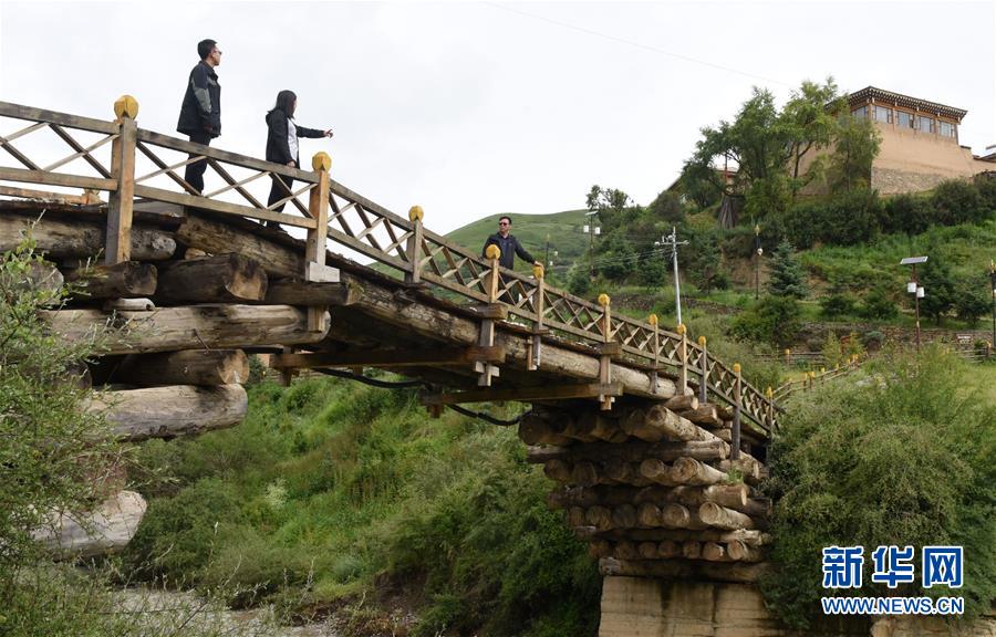 阿壩縣查理鄉(xiāng)神座村內(nèi)的伸臂橋(7月5日攝)。新華社記者陳?ài)茢z