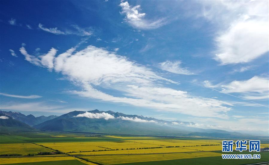 這是7月23日拍攝的門源回族自治縣的油菜花田(無人機(jī)照片)。新華社記者 吳剛 攝