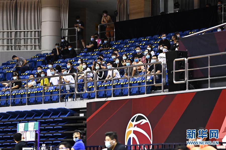 7月26日,觀眾觀看上海久事隊(duì)與山東西王隊(duì)的比賽。該場(chǎng)比賽首次恢復(fù)觀眾現(xiàn)場(chǎng)觀看比賽。當(dāng)日,在山東青島舉行的2019-2020賽季中國(guó)男子籃球職業(yè)聯(lián)賽(CBA)復(fù)賽第二階段(嶗山賽區(qū))比賽中,醫(yī)護(hù)人員、教師、公安戰(zhàn)線人士通過(guò)官方購(gòu)票平臺(tái),完成包括核酸檢測(cè)在內(nèi)的相關(guān)流程后進(jìn)場(chǎng)觀看了上海久事隊(duì)迎戰(zhàn)山東西王隊(duì)的比賽。觀賽期間,觀賽者須全程佩戴口罩,對(duì)號(hào)入座,嚴(yán)格保持間隔一米就座。退場(chǎng)時(shí),觀眾須按照自后向前、先兩邊后中間的順序,保持“一米線”社交距離有序退場(chǎng)。新華社記者 郭緒雷 攝
