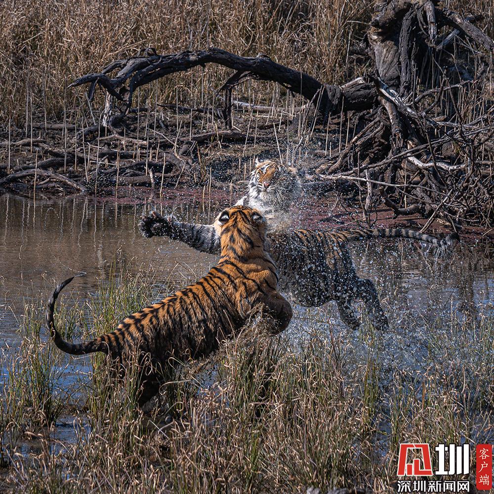 印度倆孟加拉虎兄妹開打 水花四濺“戰(zhàn)況”好激烈!