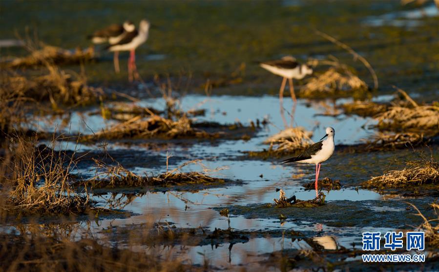 7月28日,長腳鷸在桃力廟—阿拉善灣海子覓食。鄂爾多斯?jié)竦匚挥趲觳箭R沙漠、毛烏素沙地接壤地帶,2002年被列入國際重要濕地名錄。從2006年開始,由于濕地湖面萎縮、湖心島消失,在此筑巢繁殖的世界瀕危物種遺鷗幾近消失。近年來,當?shù)夭扇《喾N治理措施,濕地生態(tài)環(huán)境逐步好轉。2019年起,濕地內(nèi)的桃力廟—阿拉善灣海子迎來遺鷗大規(guī)?!盎貧w”。如今,40多種鳥類在此棲息,鄂爾多斯?jié)竦刂匦鲁蔀轼B類的樂園。新華社記者連振攝