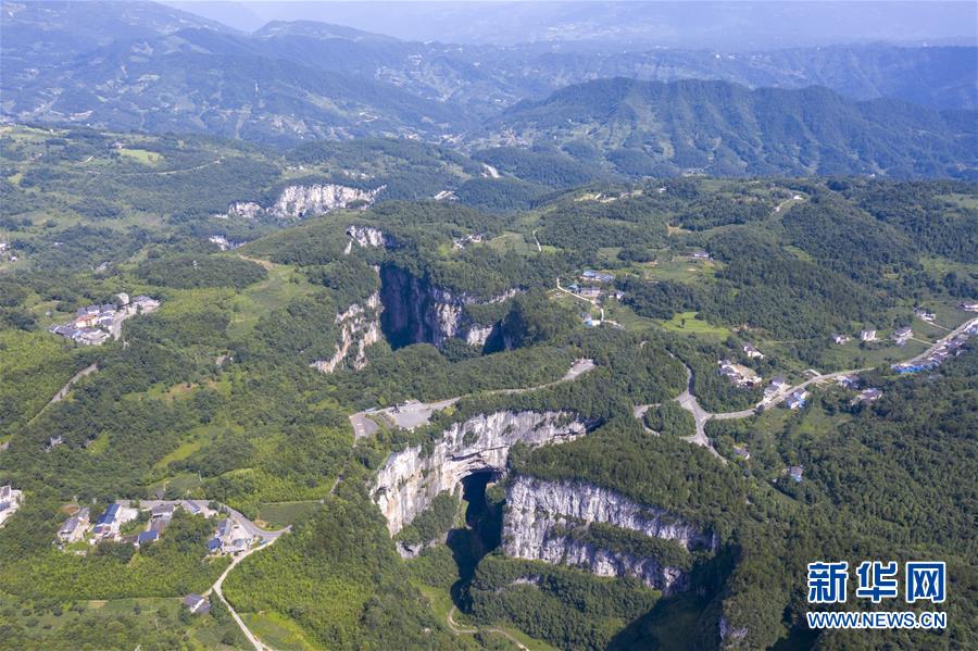 這是7月29日拍攝的天生三橋景區(qū)(無(wú)人機(jī)照片)。新華社記者劉潺攝