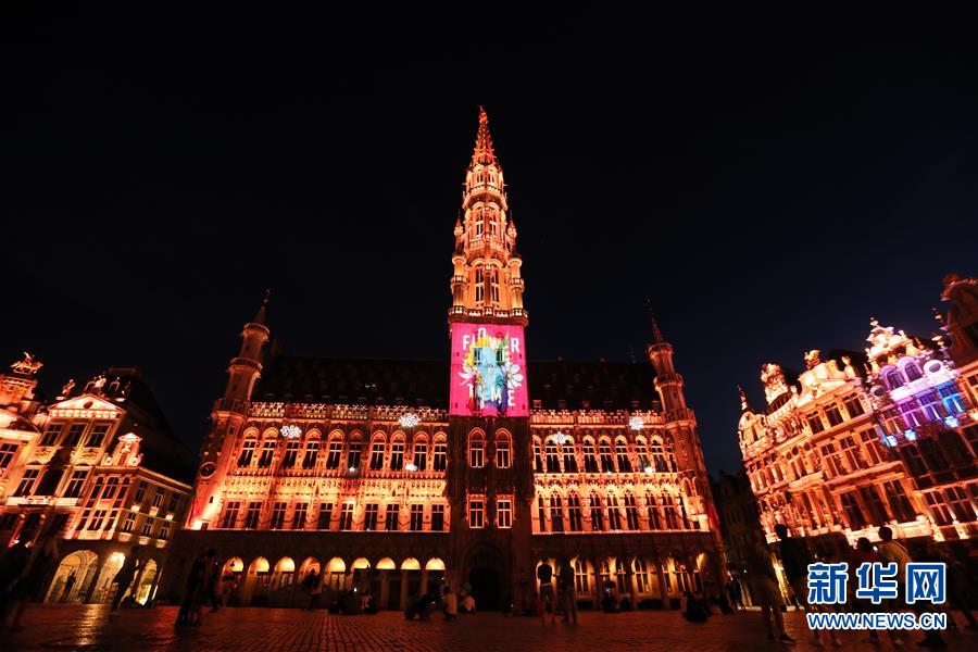 7月29日,人們?cè)诒壤麜r(shí)布魯塞爾大廣場(chǎng)欣賞聲光秀,市政廳外墻上投射出鮮花地毯主題的圖案。7月29日,比利時(shí)布魯塞爾大廣場(chǎng)舉行大型聲光秀。藝術(shù)家在市政廳等歷史建筑上投影文字和圖案,紀(jì)念這個(gè)夏天受新冠疫情影響而不能如期舉辦的文化活動(dòng)。新華社記者鄭煥松攝