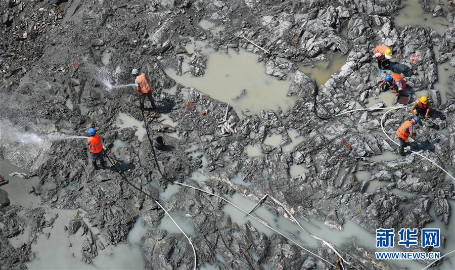 8月3日,工人在黃金峽水利樞紐電站基坑進(jìn)行巖面清理。盛夏時節(jié),在秦嶺深處的黃金峽水利樞紐工地上,施工人員冒著酷暑加班加點(diǎn)奮戰(zhàn),以確保今年11月進(jìn)行右岸二期截流。黃金峽水利樞紐壩址位于漢江干流上游峽谷段,是引漢濟(jì)渭工程的重要組成部分。新華社記者陶明攝