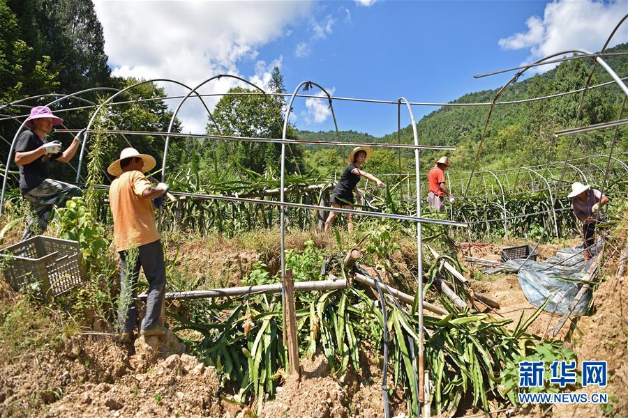 8月3日,在碗米坡鎮(zhèn)首八峒村,村民在搶修大棚.。新華社記者陳思汗攝