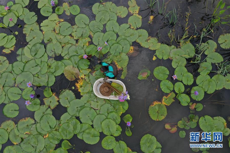 8月4日,藝溯家生態(tài)農(nóng)場(chǎng)工作人員在池塘采摘香水蓮花。近年來,位于浙江湖州吳興區(qū)八里店鎮(zhèn)移沿山村的藝溯家生態(tài)農(nóng)場(chǎng),在約45畝的傳統(tǒng)水產(chǎn)養(yǎng)殖池塘上規(guī)?;N植香水蓮花,既凈化水質(zhì),又提高了經(jīng)濟(jì)效益。農(nóng)場(chǎng)還設(shè)計(jì)出種植、采摘和加工香水蓮花的工藝流程,以面向更多農(nóng)戶推廣。新華社記者黃宗治攝