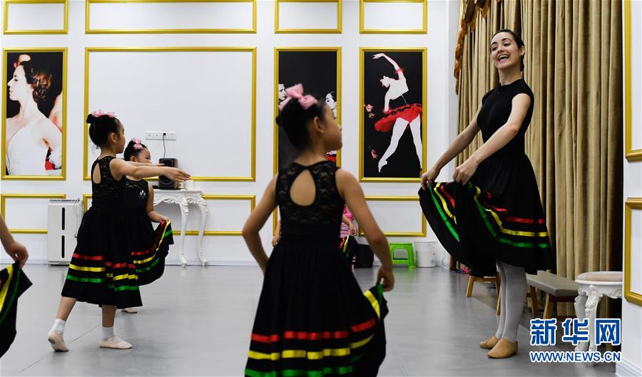 在三亞吉普西芭蕾學校鴻洲校區(qū),老師在指導學員練習芭蕾舞(8月4日攝)。暑假期間,海南三亞不少孩子來到芭蕾舞學校學習,在老師指導下學習了解芭蕾舞,感受芭蕾藝術的魅力,豐富假期生活。新華社記者楊冠宇攝