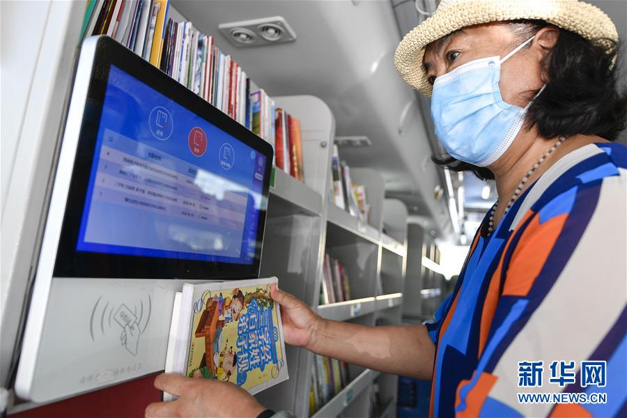 8月5日,長春市民在“流動(dòng)圖書館”里自助辦理圖書借閱。三千冊(cè)圖書,一輛大巴車,穿梭在城市的街頭巷尾。在吉林長春,長春市圖書館利用流動(dòng)圖書車,定期在市內(nèi)15個(gè)固定服務(wù)點(diǎn)間巡回流動(dòng),為市民提供便捷的圖書借閱服務(wù)。新華社記者許暢攝