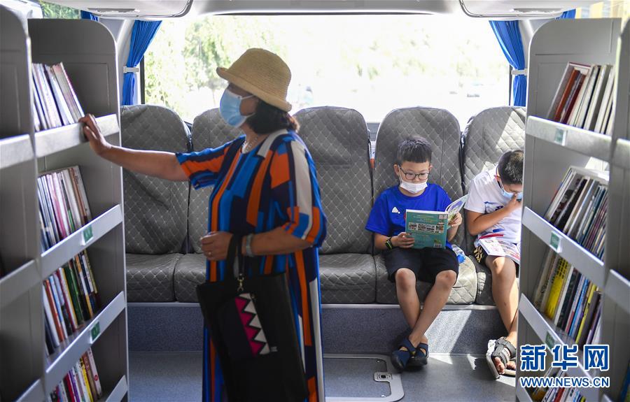 8月5日,小讀者在“流動(dòng)圖書館”里看書。三千冊(cè)圖書,一輛大巴車,穿梭在城市的街頭巷尾。在吉林長春,長春市圖書館利用流動(dòng)圖書車,定期在市內(nèi)15個(gè)固定服務(wù)點(diǎn)間巡回流動(dòng),為市民提供便捷的圖書借閱服務(wù)。新華社記者許暢攝