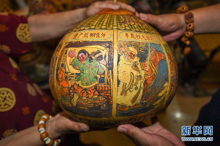 這是侯景偉創(chuàng)作的民俗主題葫蘆工藝品(8月5日攝)。今年55歲的吉林四平人侯景偉自幼與家人學(xué)習(xí)雕刻、烙畫(huà)藝術(shù)。經(jīng)過(guò)多年潛心研究,他將浮雕和烙畫(huà)工藝相結(jié)合,通過(guò)拋光、起稿、雕刻、烙燙、套色等十余道工藝,制作展現(xiàn)傳統(tǒng)文化、民俗故事的葫蘆工藝品。2020年,侯景偉被評(píng)為四平市非物質(zhì)文化遺產(chǎn)項(xiàng)目侯氏葫蘆雕刻烙畫(huà)代表性傳承人。他說(shuō):“希望有更多人加入到非遺傳承隊(duì)伍中,讓小葫蘆‘講’出更多民俗故事?!毙氯A社記者張楠攝