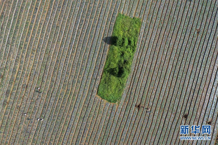 這是威寧縣草海鎮(zhèn)中海社區(qū)蔬菜基地(8月6日攝,無(wú)人機(jī)照片)。新華社記者金良快攝