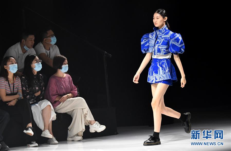 8月6日,模特在時裝秀上展示時裝。當日,2020中國(河南)國際大學生時裝周舉行河南大學生優(yōu)秀服裝設(shè)計專場展示。8月5日至7日,2020中國(河南)國際大學生時裝周在河南省新密市豫發(fā)密蘭小鎮(zhèn)舉行。新華社記者朱祥攝