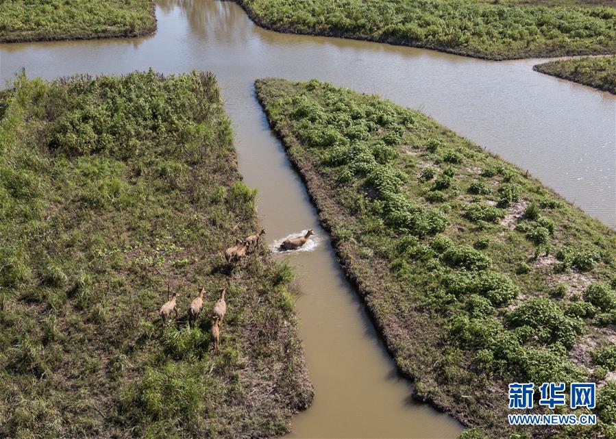 這是8月7日在東洞庭湖麋鹿和鳥(niǎo)類(lèi)救治避難中心拍攝的麋鹿(無(wú)人機(jī)照片)。位于湖南省岳陽(yáng)市的東洞庭湖麋鹿和鳥(niǎo)類(lèi)救治避難中心成立于2016年9月,占地400余畝,中心自建成后就承擔(dān)起東洞庭湖區(qū)域全部麋鹿的救援、醫(yī)治、康復(fù)和喂養(yǎng)任務(wù)。目前該中心共有14只麋鹿正在接受救助。新華社記者李鑫攝