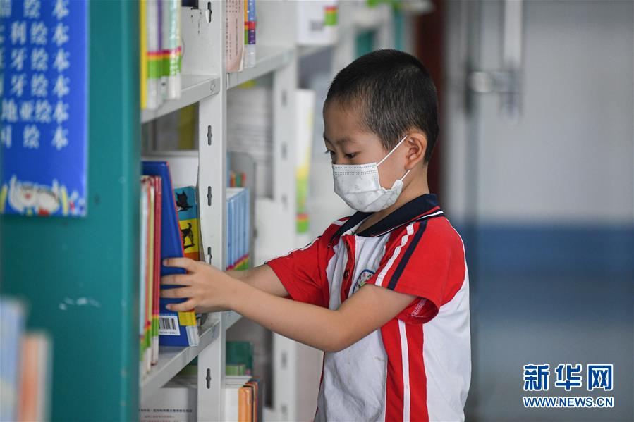 8月8日,小朋友在位于??诘暮D鲜D書(shū)館查找圖書(shū)。新華社記者 蒲曉旭 攝