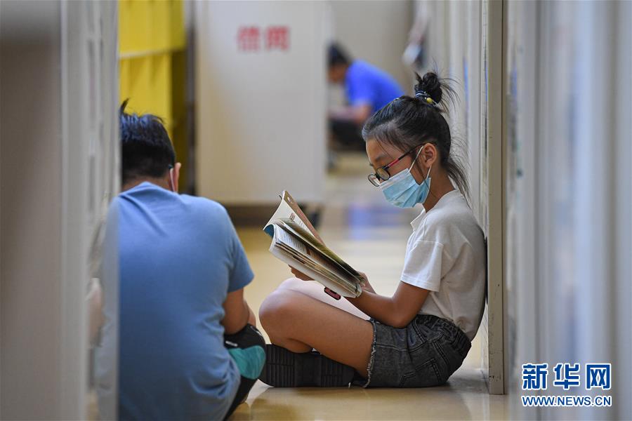8月8日,小朋友在位于??诘暮D鲜D書館閱讀書籍。新華社記者 蒲曉旭 攝