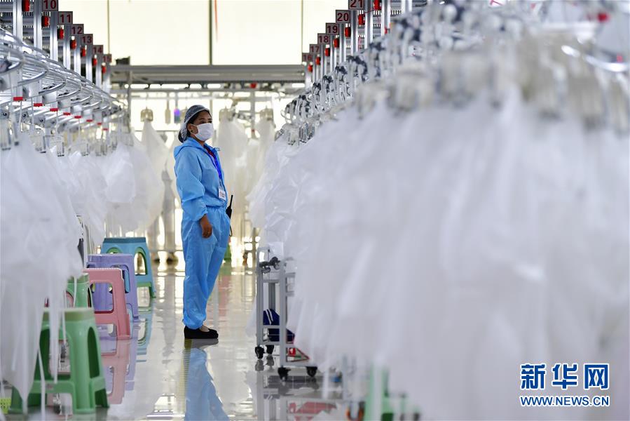 8月9日,甘肅拓奇扶貧車(chē)間的員工在服裝加工生產(chǎn)線(xiàn)上作業(yè)。甘肅拓奇扶貧車(chē)間位于甘肅省臨夏回族自治州積石山縣,是依托東西部扶貧協(xié)作平臺(tái)引進(jìn)的服裝加工企業(yè)。扶貧車(chē)間建成投產(chǎn)以來(lái)帶動(dòng)就業(yè)近300人,其中吸納建檔立卡貧困戶(hù)就業(yè)110人,實(shí)現(xiàn)了貧困群眾就地就近就業(yè)增收的目的,為助推當(dāng)?shù)孛撠毠?jiān)及縣域經(jīng)濟(jì)發(fā)展發(fā)揮了重要作用。新華社記者邢廣利攝。