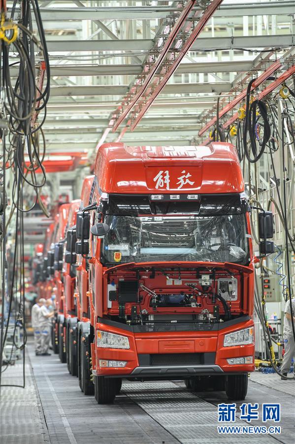 8月10日,在位于長春市的一汽解放總裝車間,工人在裝配車輛。中國第一汽車集團(tuán)有限公司7月銷售整車32.2萬輛,同比增長23.2%,延續(xù)上半年的增長態(tài)勢。新華社記者張楠攝。