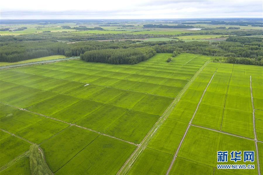 8月11日在撫遠市拍攝的稻田(無人機照片)。時下,“華夏東極”黑龍江省撫遠市的水稻長勢良好,蒼翠的稻田一望無際,猶如綠毯鋪在大地上。新華社記者謝劍飛攝。