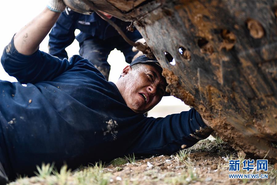7月6日,卓乃湖保護(hù)站站長秋培扎西在可可西里地區(qū)修理車輛。世界自然遺產(chǎn)地可可西里,全球生態(tài)版圖中一處熠熠生輝的坐標(biāo),野生動(dòng)物種類繁多。藏羚羊,被稱為“可可西里的驕傲”。今年藏羚羊遷徙產(chǎn)仔季,記者跟隨可可西里巡山隊(duì)員前往“藏羚羊大產(chǎn)房”卓乃湖巡山,感受他們守護(hù)“人間凈土”的堅(jiān)守與奉獻(xiàn)。暴雨、烈日、冰雹、泥濘……通向“藏羚羊大產(chǎn)房”卓乃湖的14個(gè)半小時(shí)經(jīng)歷,令人難忘。新華社記者張龍攝