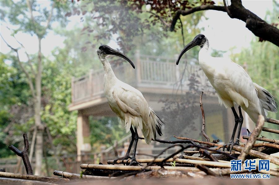 8月11日,上海動物園的兩只白鹮在享受噴淋降溫。當(dāng)日,上海最高溫度達(dá)到35攝氏度,上海動物園開啟園內(nèi)安裝的各種噴淋裝置,讓動物們防暑降溫,樂享清涼。新華社記者張建松攝
