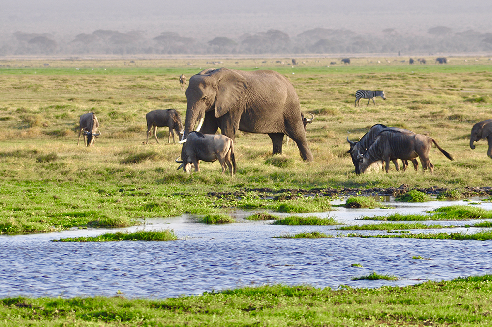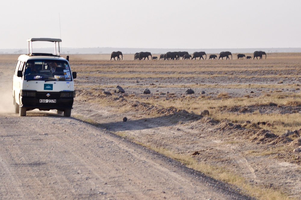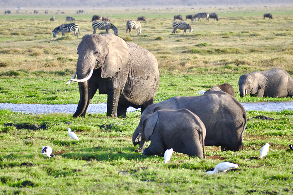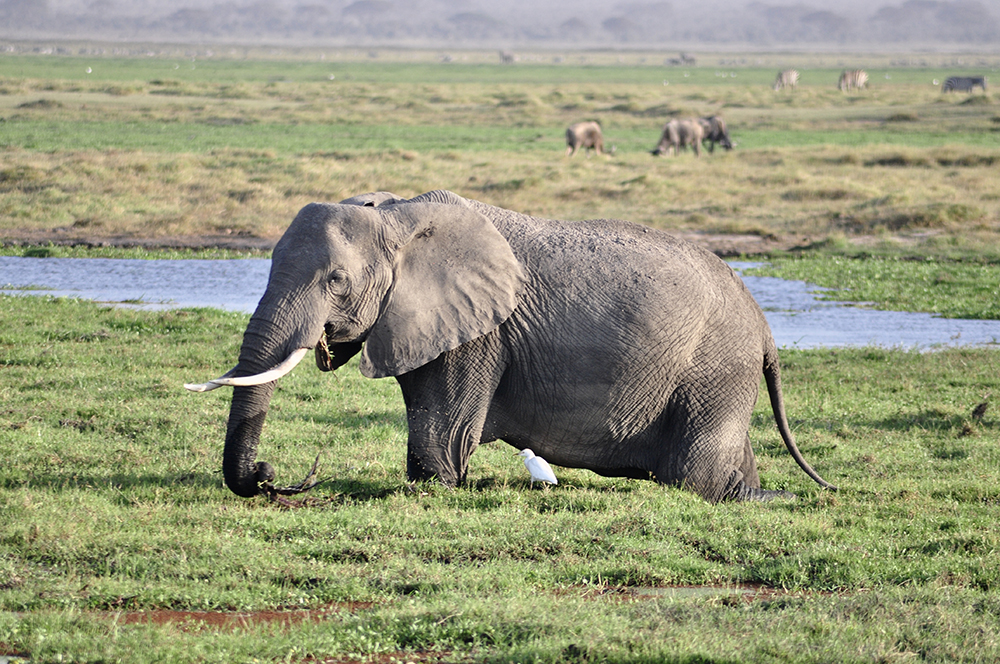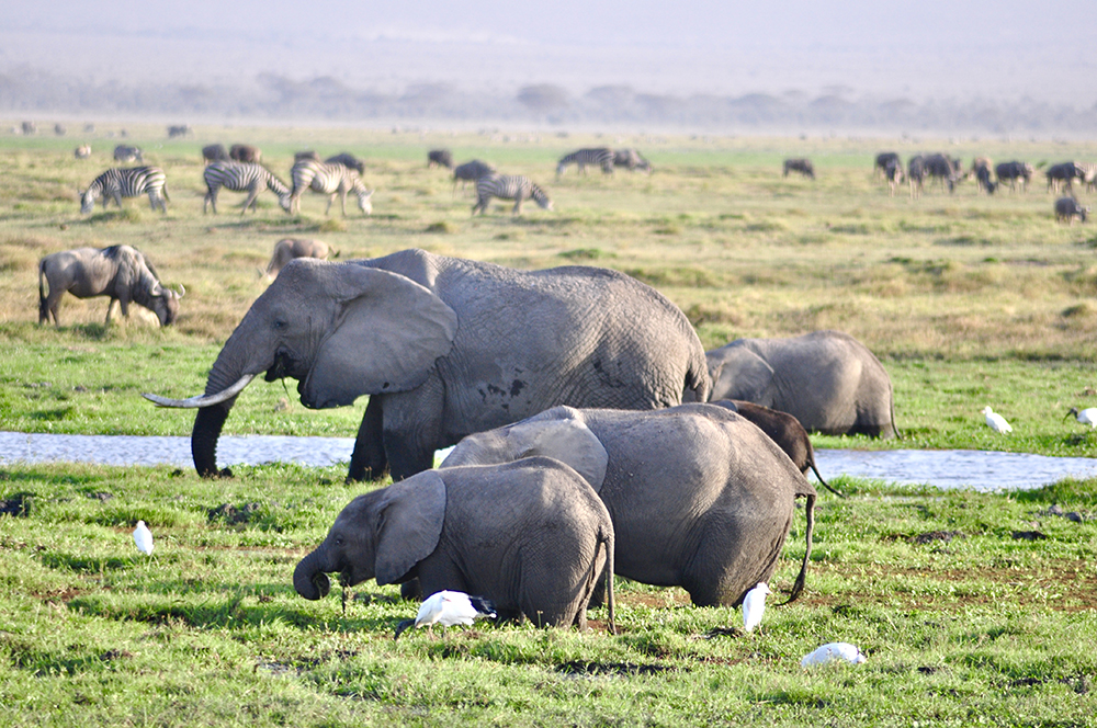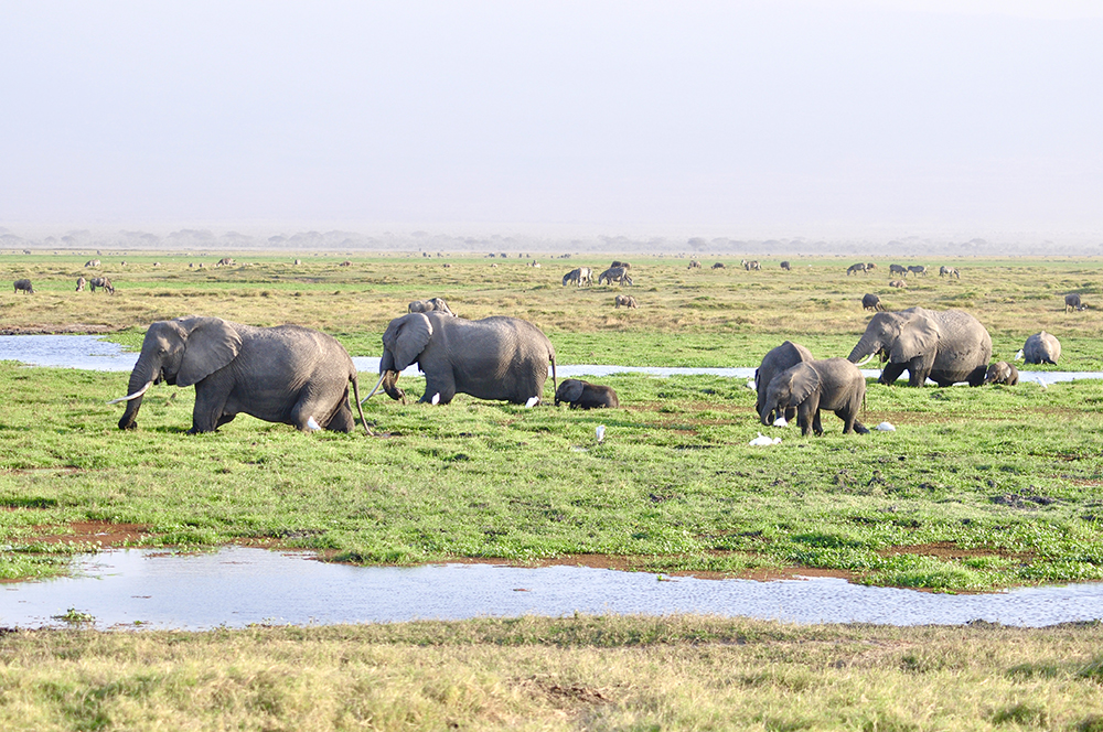 肯尼亞東南部,與坦桑尼亞接壤的安博賽利國(guó)家公園,距內(nèi)羅畢240公里,因水草豐美而成為野生非洲大象的樂園。