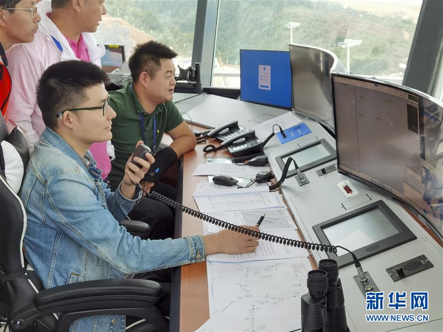 8月13日,參加校飛的地面工作人員在仙女山機(jī)場的塔臺工作區(qū)內(nèi)工作。當(dāng)日,位于重慶武隆區(qū)的仙女山機(jī)場飛行校驗(yàn)工作正式開始。據(jù)介紹,重慶仙女山機(jī)場校飛時間大約需3至5天。重慶仙女山機(jī)場于2018年4月全面開工,機(jī)場跑道長2800米、寬45米,航站樓總面積6000平方米,投用后可滿足每年60萬人次的旅客吞吐量。新華社記者劉潺攝