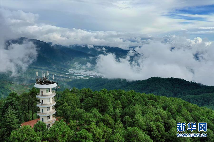 邛海瀘山國家級風(fēng)景名勝區(qū)掩映在云霧中(8月13日攝,無人機照片)。 新華社記者 李賀 攝