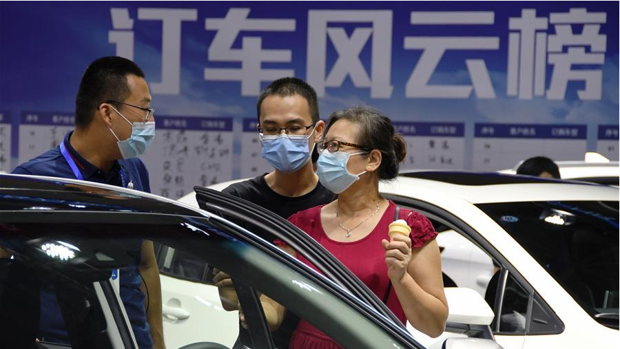 6月27日,市民在第35屆中國(guó)·福州國(guó)際汽車展覽會(huì)上看車選車。