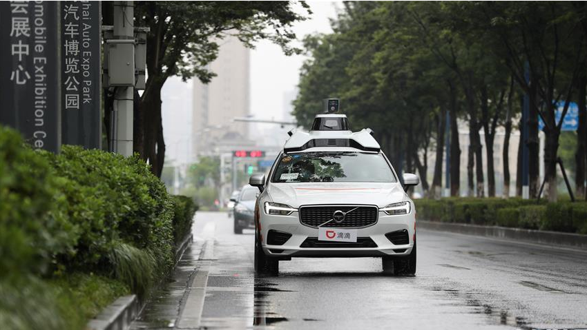 這是6月27日在上海汽車會(huì)展中心拍攝的滴滴自動(dòng)駕駛體驗(yàn)區(qū)。