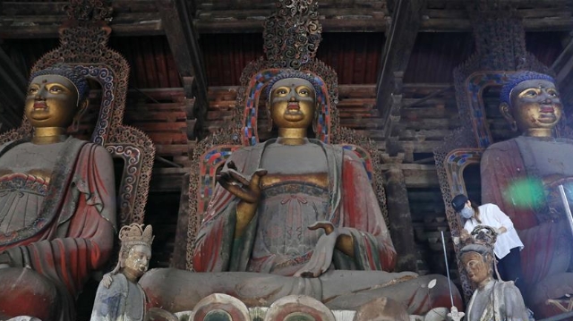 日前,建于1020年的遼寧錦州義縣奉國寺開始進(jìn)行彩繪泥塑一期保護(hù)修復(fù)工程。