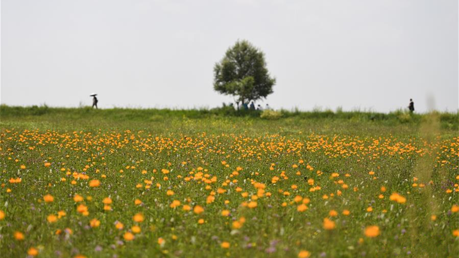 這是7月22日拍攝的金蓮川草原。金蓮川草原位于內蒙古自治區(qū)錫林郭勒盟正藍旗,正值盛夏,金蓮川草原上鮮花綻放,景色宜人。